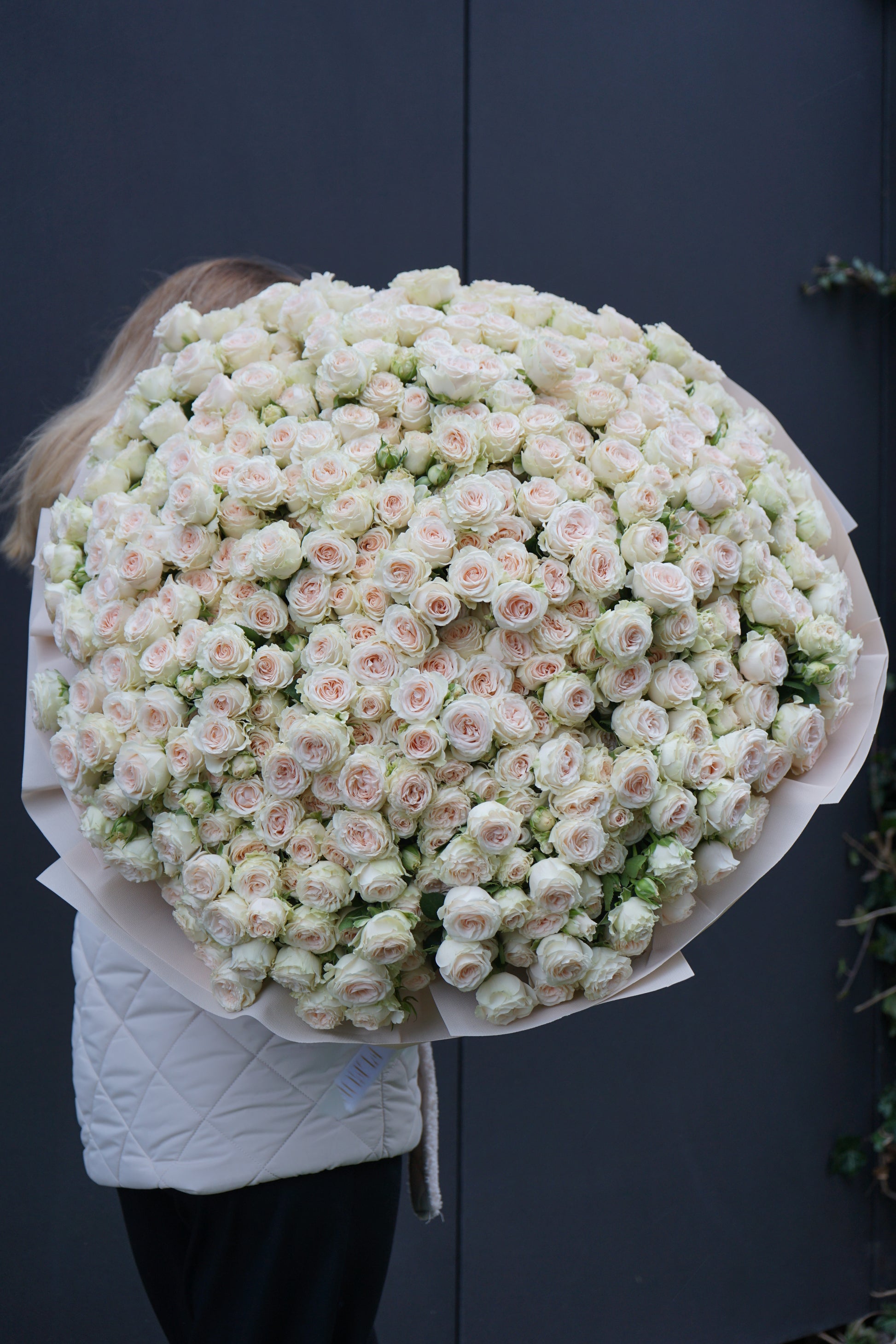 Bukiet kremowych gałązkowych róż. Na zdjęciu bukiet z 11,15, 35,101 gałązkowych róż. Podaruj niezapomniane emocje swoim bliskim. Możesz powiększyć lub zmniejszyć bukiet.