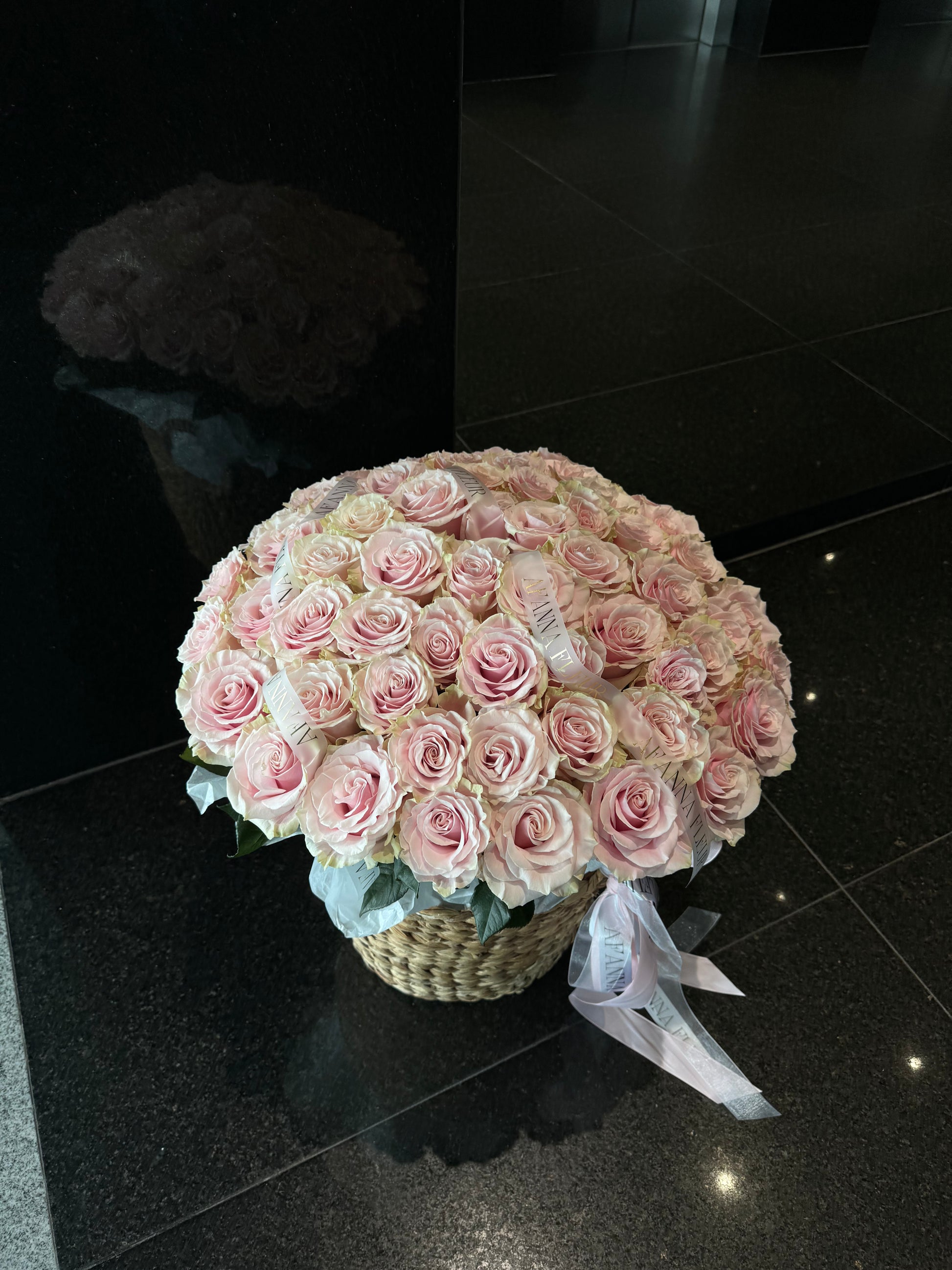 Корзина нежно розовых роз